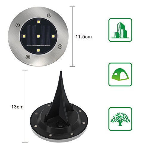 Solar Powered Ground Light, Waterproof Garden Pathway Lights With 5 LEDs for Home, Yard, Driveway, Lawn, Pack of 4 (Warm white)