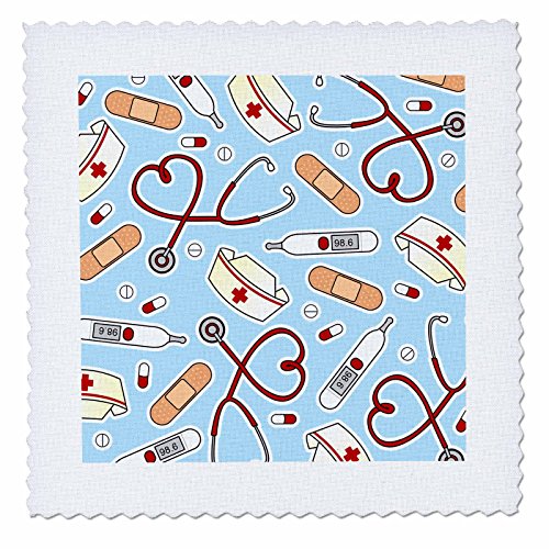 3dRose qs_128494_2 Nurse Love Cute Cartoon Rn Supplies Quilt Square, 6 by 6-Inch, Blue
