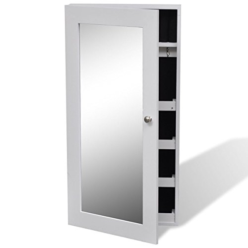 -. Binding : Kitchen -. Brand : The Best Shopping -. Color : White -. EAN : 0658921670422 -. Feature : Color: White / Material: MDF + steel + glass / Overall dimensions: 11.8" x 3.1" x 1' 11" (L x W x H) / Mirror dimensions: 8.3" x 1' 8" (W x H) / With a front mirror -. Label : The Best Shopping -. Manufacturer : The Best Shopping -. ProductGroup : Home -. ProductTypeName : HOME -. Publisher : The Best Shopping -. Size : 11.8" x 3.1" x 23.8" (L x W x H) -. Studio : The Best Shopping -. Title : White Mirrored Jewelry Cabinet Armoire Mirror Organizer Box Stand Storage Wall Mount Gift -. UPC : 658921670422