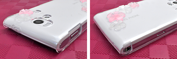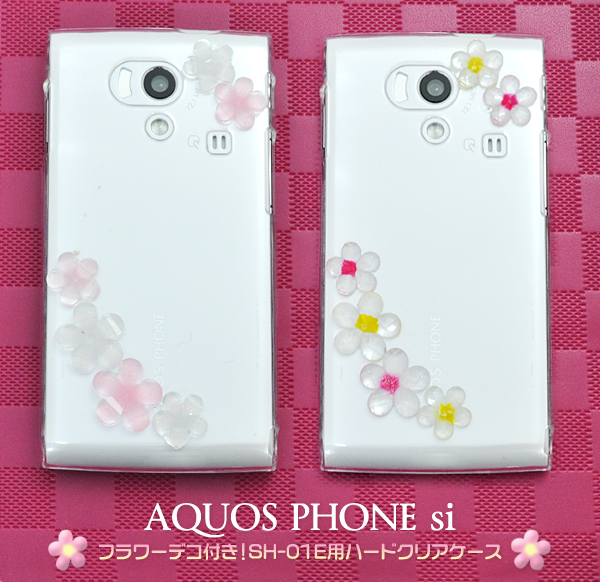 キュートなフラワーデコ付きのAQUOS PHONE si SH-01E用ハードクリアケース