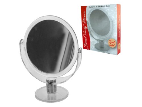 bulk buys OC636 Dual Sided Round Stand Up Vanity Mirror, Transparent, Silver