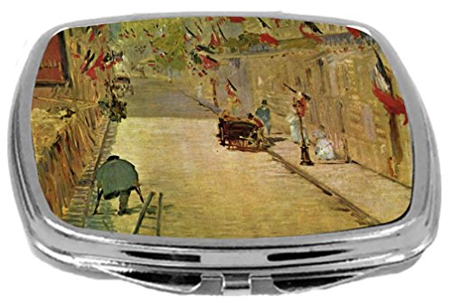 Rikki Knight Compact Mirror, Edouard Manet Art Rue Mosnier with Flags, 3 Ounce