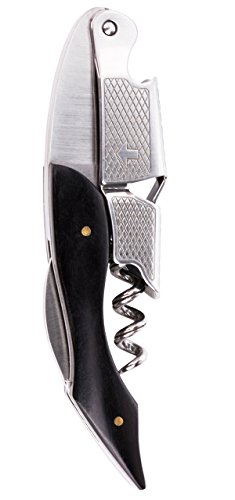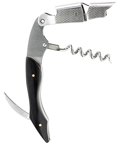 Includes One 3 in 1 Ebony Black Genuine Wood and Stainless Steel Waiter's Corkscrew with double hinged 2-step fulcrum, foil cutter and bottle opener. Unlike other models, our corkscrew features a top quality hinge design, a deeper grooved corkscrew, deep inset grid for easy grip of the hinge, and a fully polished and finished genuine wood handle.