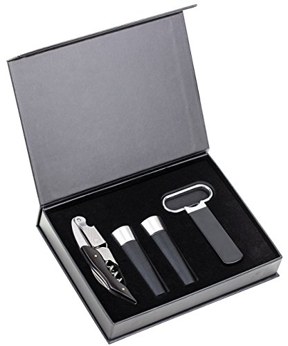 The perfect kit for any wine lover, bartender, hostess or enthusiast! Presented in an attractive box with velour lining and front magnetic closure, this set also makes the perfect gift you can be proud to present!