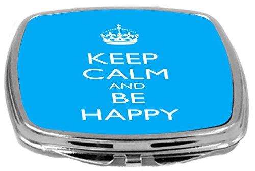 Rikki Knight Compact Mirror, Keep Calm and Be Happy, Sky Blue