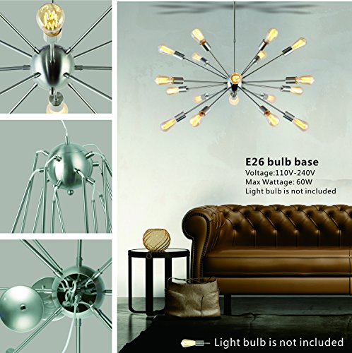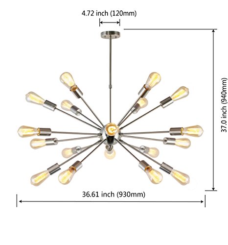 VINLUZ Sputnik Chandelier Brushed Nickel 18 Lights Modern Pendant Lighting Large Industrial Ceiling Light Fixture UL Listed