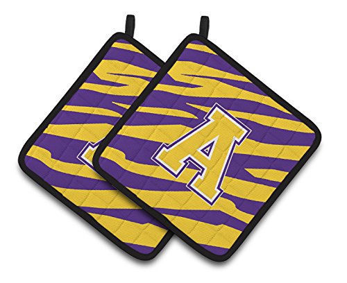 Caroline's Treasures Letter A Monogram - Tiger Stripe - Purple Gold Pair of Pot Holders CJ1022-APTHD, 7.5HX7.5W, Multicolor