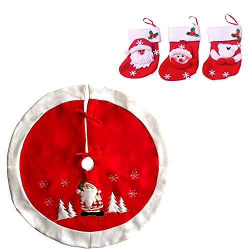 KMMall Christmas Tree Skirt 35 Inches Red Luxury Velvet Tree Skirt with 3 Free Christmas Socks Ornaments Christmas Party Decoration