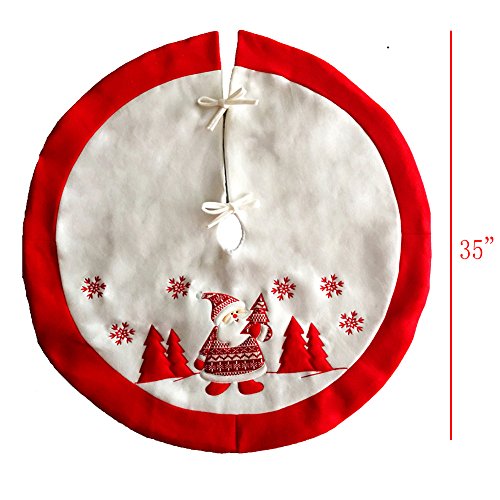 Size : The elegant tree skirt measures about 90cm / 35" in diameter Weight :270g/0.59 lbs . Material : Velvet