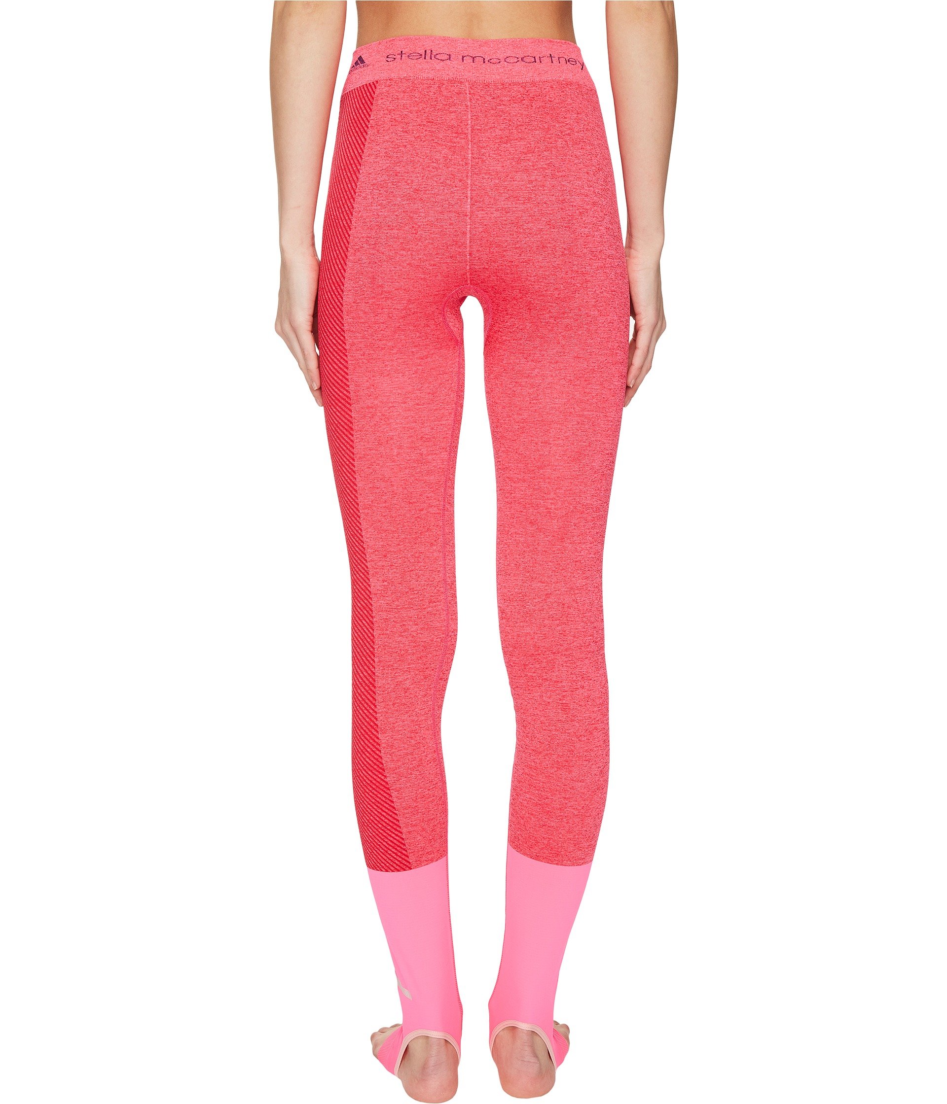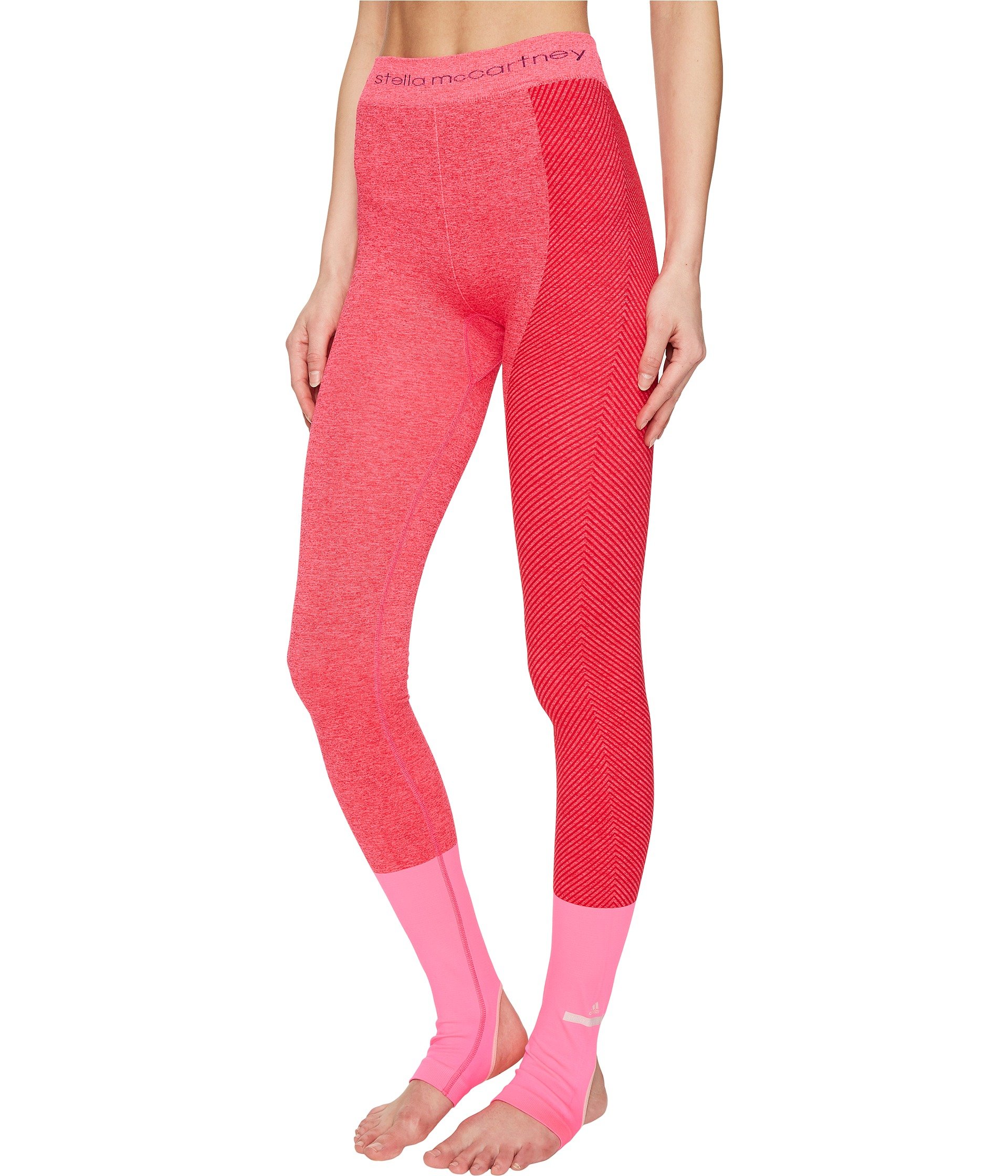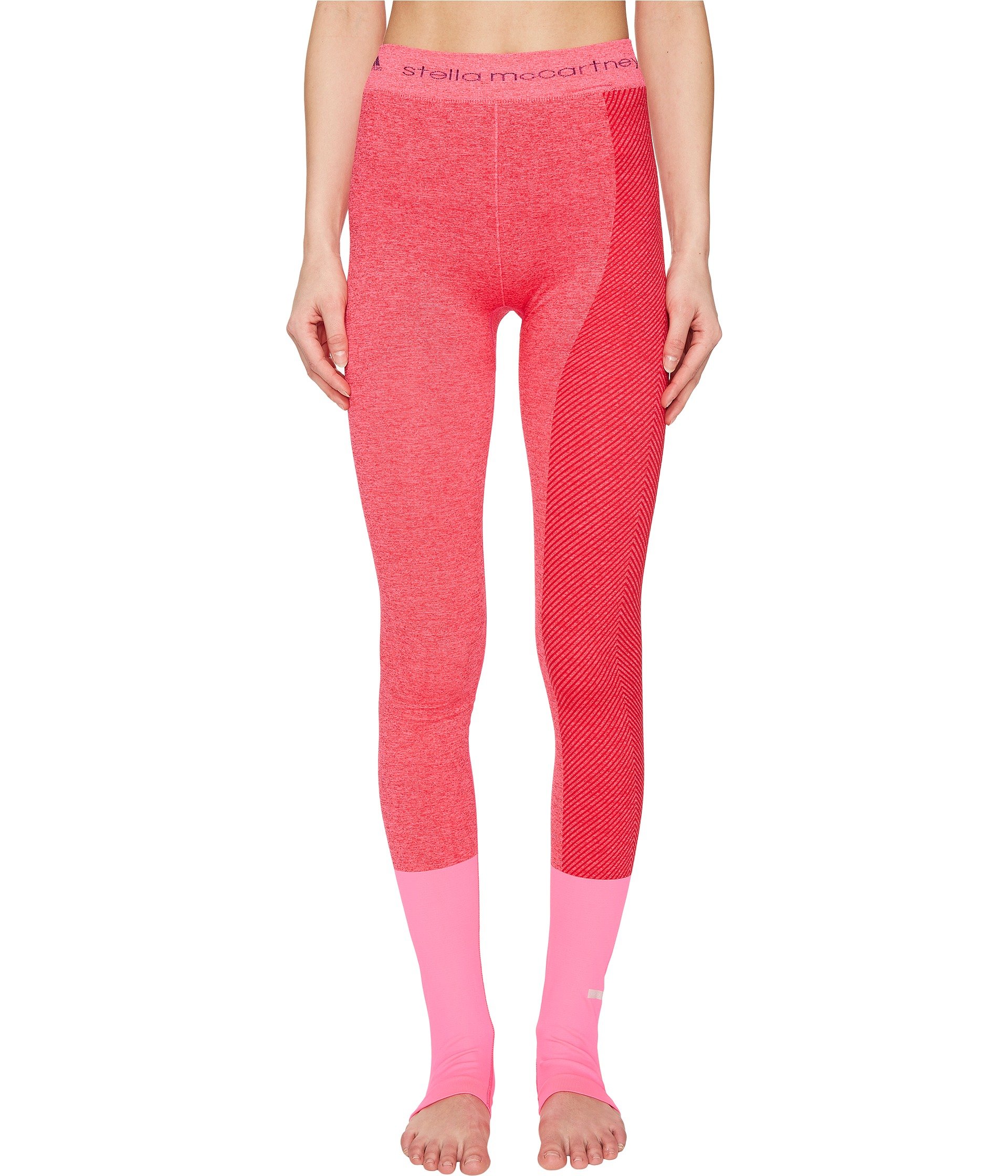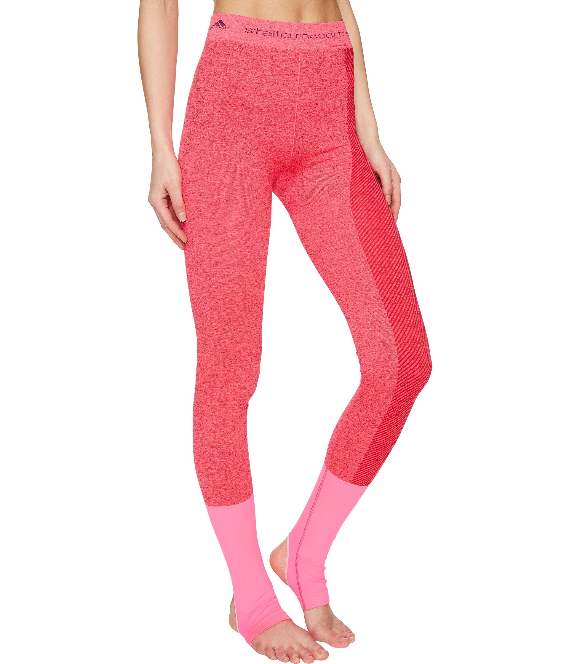 | Product Information SKU: #8913719Hold an effective trikonasana pose in the adidas? by Stella McCartney Yoga Seamless Tights.ClimaLite? technology, keeping your body dry and comfortable by drawing moisture away from the skin.Branded, elastic waist.Full length with foot insert.Color block design.Brand logo at left ankle.Banded ankle cuffs.92% nylon, 8% spandex.Machine wash cold.Imported.This item may ship with an attached security tag. Merchandise returned without the original security tag attached or a damaged tag may not qualify for a refund.Product measurements were taken using size SM, inseam 32. Please note that measurements may vary by size.Measurements: Waist Measurement: 22 in Outseam: 40 in Inseam: 32 in Front Rise: 9 in Back Rise: 12 in Leg Opening: 7 in |