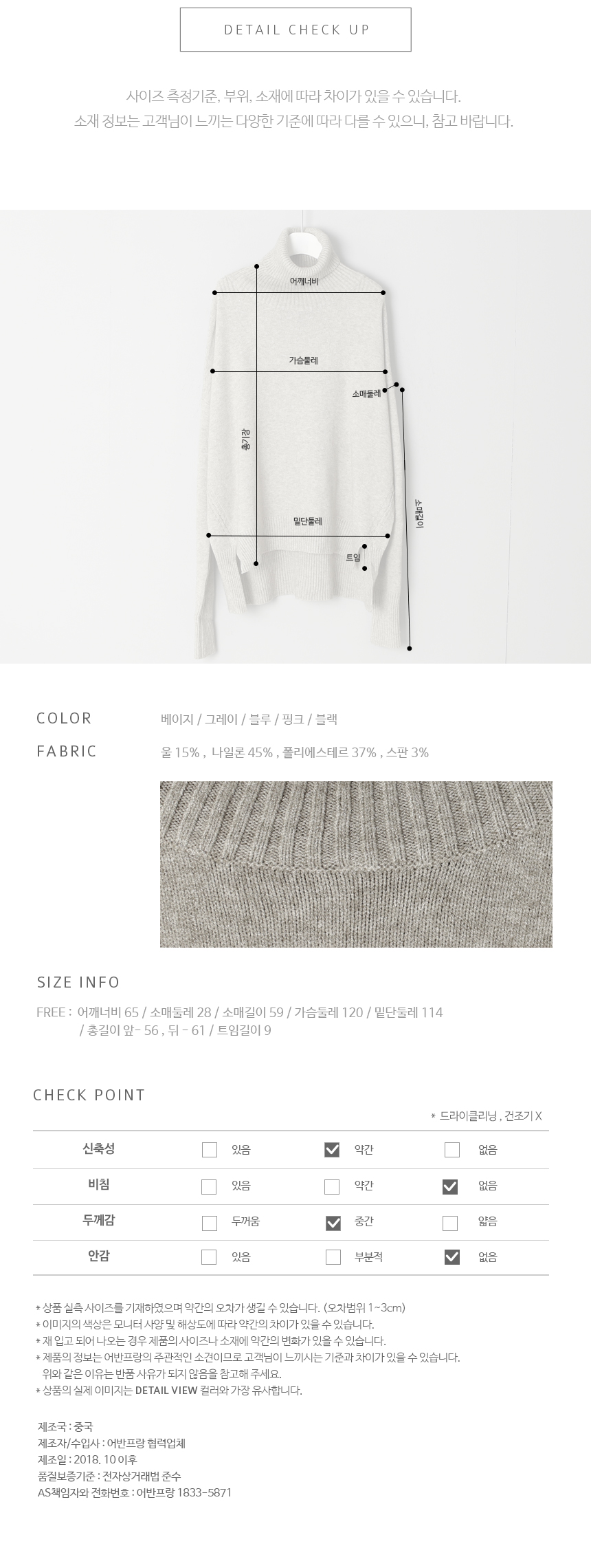 아우터안에 이너로도 부담없을 정도의 부피감에