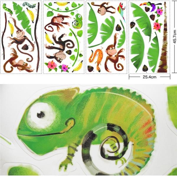 ジャングルを遊び回る小猿を描いた楽しいセットです。バナナの木や、カメレオン・鳥・蛇などの動物たちを楽しく飾って、熱帯の雰囲気満載のお部屋を作って下さい。 こども部屋やバスルーム、キッズルームなどにおすすめです。 ★商品名★モンキービジネス★商品番号★RMK1676SCS★シートサイズ★[ 25.4cm × 45.7cm ] × 4枚 ★内容★41ピース/1パック