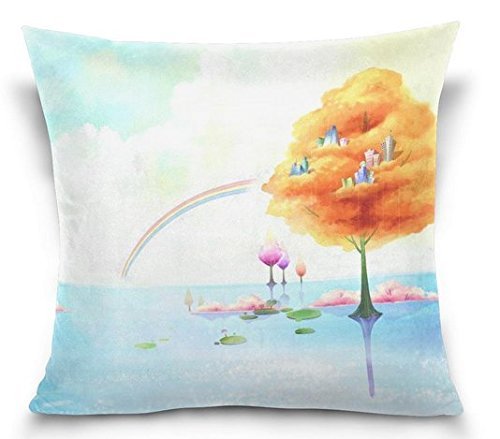 (Natcrowno)/Bedding Bath/Bedding/DIRECT FROM USA/Natcrowno Pillowcase Light Blue Children Watercolor Orange Tree Houses Rainbow 18x18 Inches One...