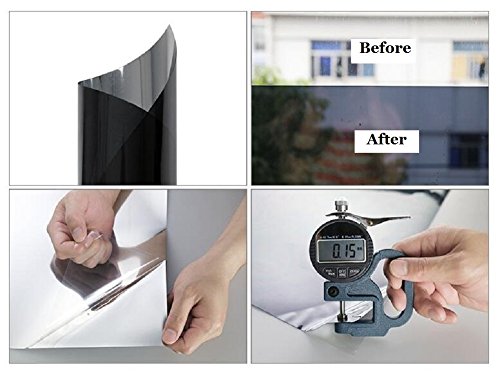 Adhesive-free Peel & Stick Static Cling No Glue One Way Mirror Daytime Privacy and Solar Control Window Glass Film, Sun Blocker, 19.7 Inches by 78.7 Inches per Roll, Black Grey