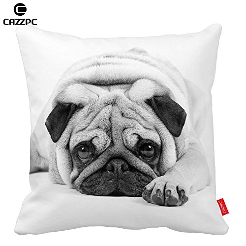 Cazzpc Cushion Cover Cute Pug Dog Black and White Pattern Print Home Decor Size 45x45cm