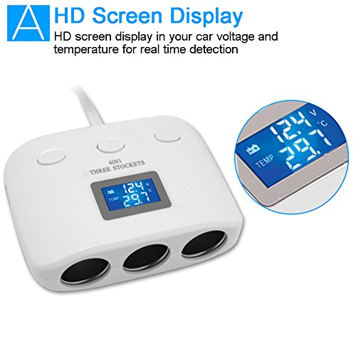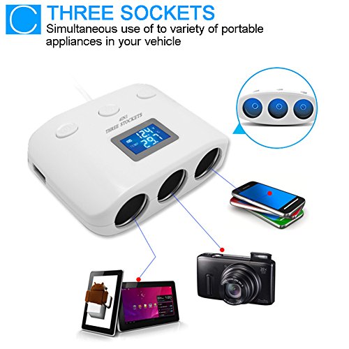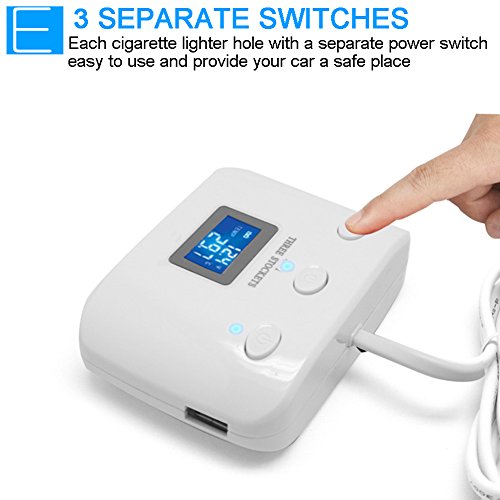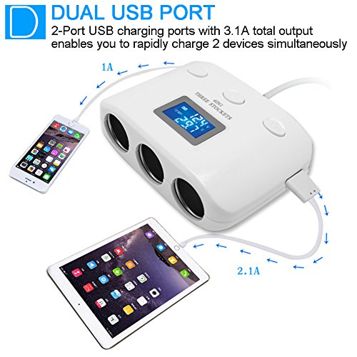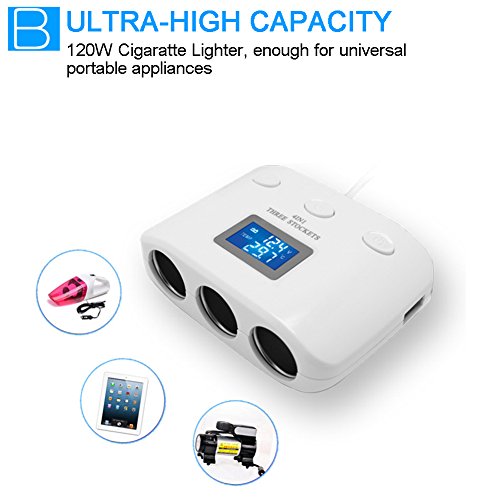 Cigarette Lighter Adapter – SurLight 120W 3-Socket Car Cigarette Lighter Splitter 3.1A DC Outlet Multi-functions Car Splitter 12V/24V Dual USB Car Charger Adapter for iPhone iPad Samsung GPS Dash Cam