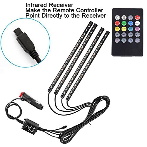 Car Interior Lights - SurLight 4pcs 36 LED DC 12V Multicolor Music Car LED Strip Light LED Under Dash Lighting Kit with Sound Active Function and Wireless Remote Control, Car Charger Included