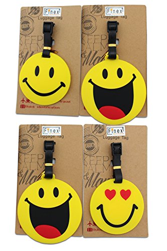 -. Brand : FINEX -. Color : Random -. Department : unisex-adult (lage only) -. EAN : 8198011001832 -. Feature : *Set of 4* Emoji Smiling Face Lage ID Tag / Adjustable strap will fit any size lage or personal item handle / Made of high-quality durable silicone / Approx Dimension: 4.4" x 2.5" / Finex is a registered Trademark. Sold exclusively by Finex Authorized Distributor -. Model : SF-233 -. PackageQuantity : 4 -. ProductGroup : Apparel -. ProductTypeName : LAGE -. Size : One Size -. Title : Finex® *Set of 4* Emoji Smiling Face Travel Lage Tags Bag ID Tag with Strap