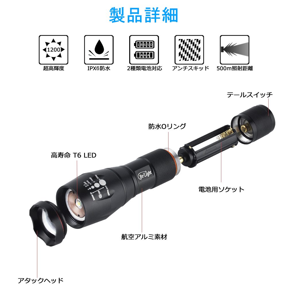 LED Flashlight 【Can be irradiated up to 500 m / Ultrahigh brightness / Zoomable / Five lighting modes / Waterproof life】