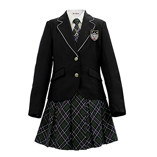 -. Feature : 【セット内容】 ジャケット・スカート・ブラウス・リボン・ネクタイ・ブローチ / 【対応サイズ目安:140,150,160,165】 サイズの詳細は画像をご参照下さい。 / ▼リボンはボタン留め、ネクタイはホック留め、ワッペン風ブローチは安全ピンで取り外し可能です。 ▼スカートウエスト部分は無段階アジャスターゴムでサイズ調節が可能です。 ▼ジャケットの色はブラックです。 Made in China / ※寸法はスーツの上から直接測りました。実寸をお確かめの上、ご注文頂けますようお願い申し上げます。 / 【品質表示】▼ジャケット:ポリエステル100% (裏地)ポリエステル100% ▼ブラウス:ポリエステル100% ▼スカート:ポリエステル65%・レーヨン35% (裏地)ポリエステル100% ▼リボン、ネクタイ:ポリエステル65%・レーヨン35%