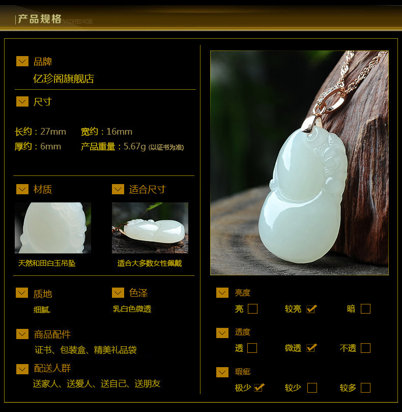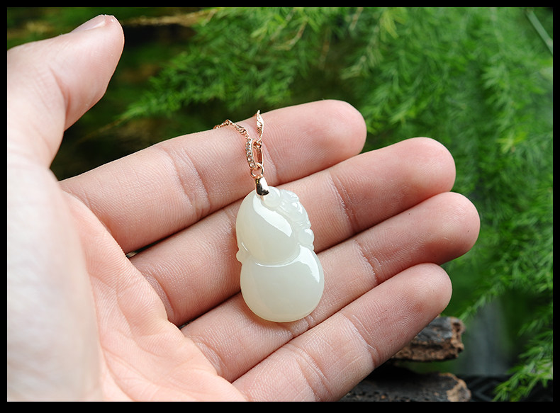 葫芦和田玉吊坠 正品玉石 女款 白玉挂件送女友生日礼物
