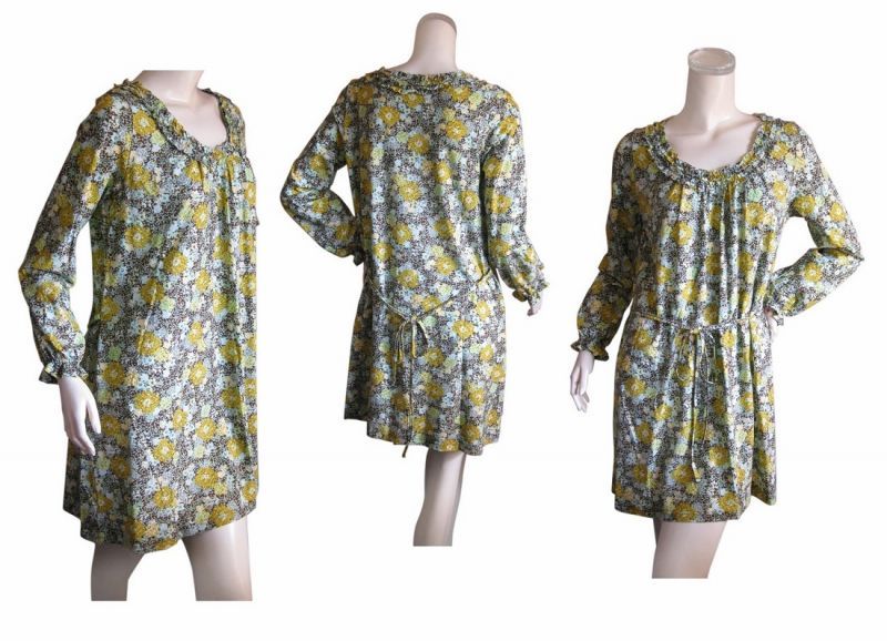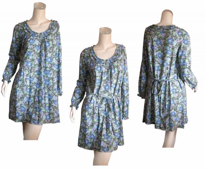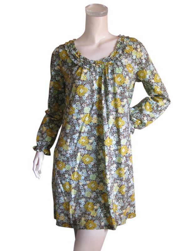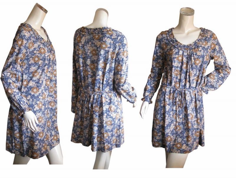 | 綿100% 繊細な花柄のAラインチュニックワンピース | |