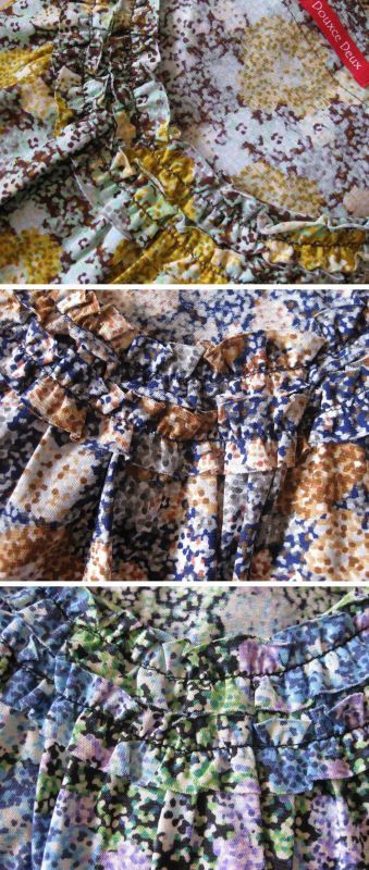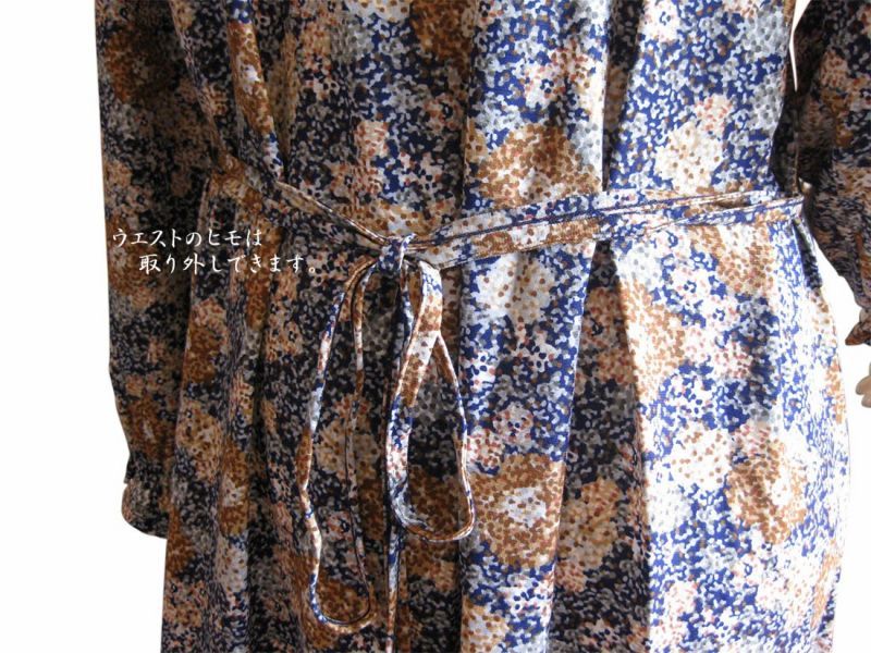 細かい点描の繊細な花柄と胸元の立体感あるフリル使い☆