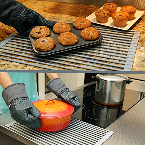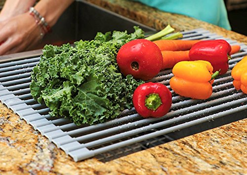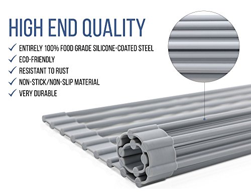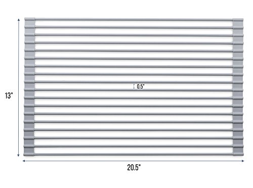 Over the Sink Drying Rack | Kitchen Dish Drainer | Supremely Versatile Dish Drying Tray | Rollable BPA-Free Silicone Coated Cooling Rack | Handy Drain Board Mat for Over Sink Salad Prep Grey by Trimm