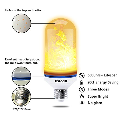 - Special design: flickering flame emulation, three lighting modes to choose, artificial vivid flame light, super bright and no glare. There are some holes in the top and the bottom for heat dissipation. You don't need to worry the bulb burns out.
