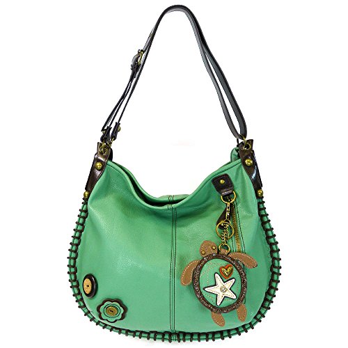 -. Brand : Chala Handbag -. Color : Blue -. Department : womens -. Feature : Convertible Hobo to Cross-body bag with detachable coin purse/key fob. / Material: Synthetic leather & textured faux leather / Patterned fabric lining with slide pockets and zip pocket inside / Product Dimensions: 16.5" X 0.5" X 13" Convertible Strap: 13"-23" / Top zip closure. Front zip pocket. Extra pocket on the back. -. PackageQuantity : 1 -. ProductGroup : Shoes -. ProductTypeName : HANDBAG -. Title : Charming X-large Hobo/Xbody Handbags (Turtle) By Chala