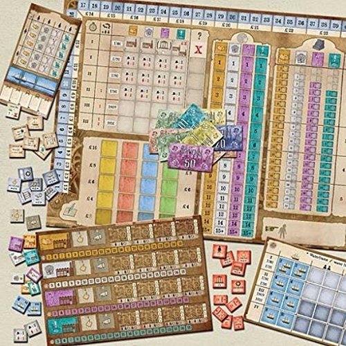 In the 17th and 18th centuries, merchantmen sailing under the English flag dominated the seas and international trade. The Navigation Acts restricted foreign ships from partaking in the trade between England and her colonies. Richard Arkwright was one of the English inventors and businessmen who developed the first advanced machines (e.g. the Spinning Jenny and the Water Frame) and founded early factories. The goods produced in this manner were highly regarded in both the old country and by the Englishmen living in the colonies. In Arkwright, 2 to 4 players lead enterprises and try to develop and run them profitably over several decades. It is important to invest in your own company and ensure that the value of its shares rises. The player with the most valuable portfolio of their shares wins the game. In the beginning, workers are required to run the factories. However, their expensive wages (£2 - £5) make machines (£1) very desirable. To increase a factory's production of goods, you may hire more workers or improve the technological level of your factory. You determine the price of your goods for each of your factories. To enhance the chances of selling your goods to serve the demand in England, you can improve the technological level of your factories, increase the quality of your goods, and partake in distribution activities. The higher these factors are, the more successful you will be. However, the higher your prices, the less appealing your goods become.Feature