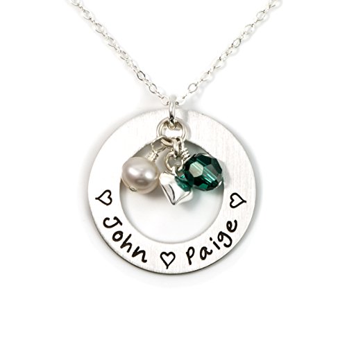 -. Title : Love Display with Personalized Sterling Silver Round Washer, Hand Finished. Includes up to 4 Swarovski Birthstones or Pearls, and a choice of Sterling Silver Chain. Perfect Gift for Her