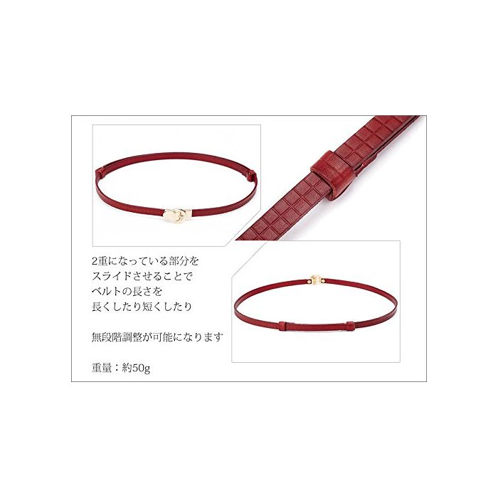 원본상품명: ベルト 本革 牛革 レディス 細ベルト 女性用 スライドベルト 無段階調整 上質 エレガント ブラウジング