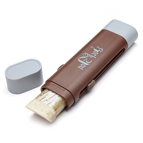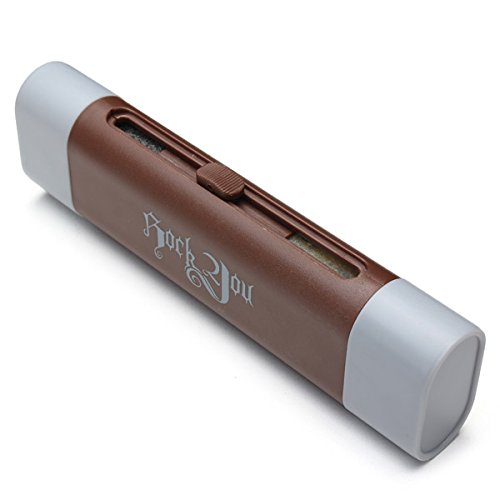 String cleaner with two heads: one removes the rust and the other lubricates the string. Slide control system, easy to operate. Lid covers on the both heads for preventing volatilization of grease. Compact designed, generous appearance, easy to carry.