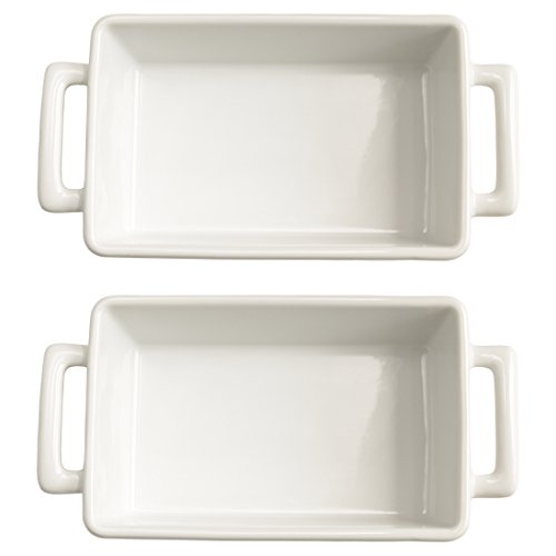 Product Description Prepare a delicious mini lasagna in the individual sized HIC rectangular baking pan or a family sized lasagna in the larger lasagna pan. Made from porcelain, each pan has a classic white color that will look great anywhere. They are perfectly sized for lasagna and each features two helper handles for carrying. Great for casseroles and desserts as well, these lasagna pans are dishwasher safe for easy clean up. 0