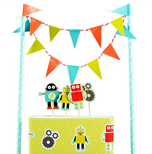 Colorful Funny Cartoon Robot Cake Garland Bunting Flag Toothpicks Toppers Wrap Sets Party Favors Supplie Baby Boy Shower Kids Children Toddler Birthday Party Decorations