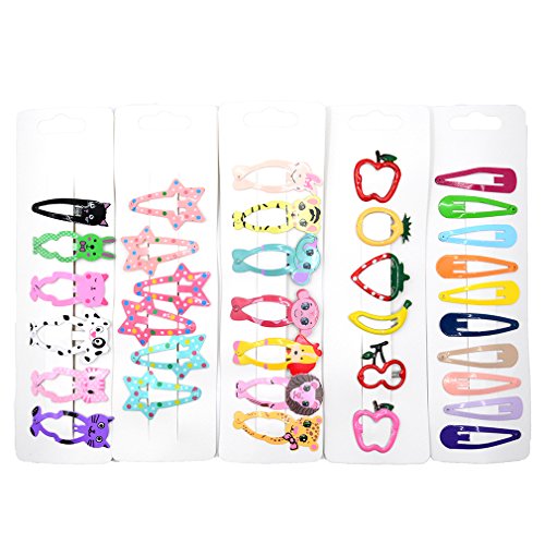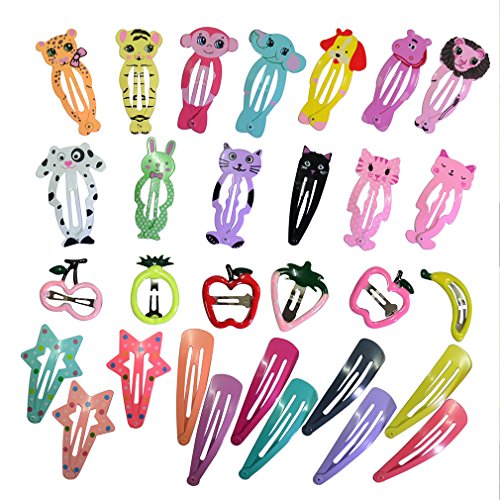 PIDOUDOU 5 Pack (35 Pcs) Animal Pattern Print Girls' Metal Snap Hair Clips