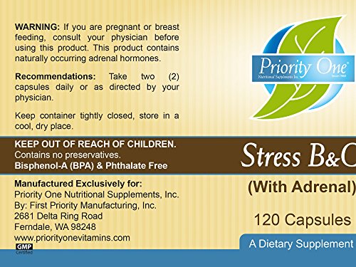 -. Title : P.R.Iority One Vitamins Stress B & C 120 Capsules - B complex with whole gland adrenal to support healthy nerves, skin, eyes, gastrointestinal, and brain functions.*