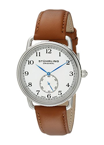 -. Title : Stuhrling Original Men's 207.01 Classic Cuvette Swiss Quartz Brown Leather Strap Watch