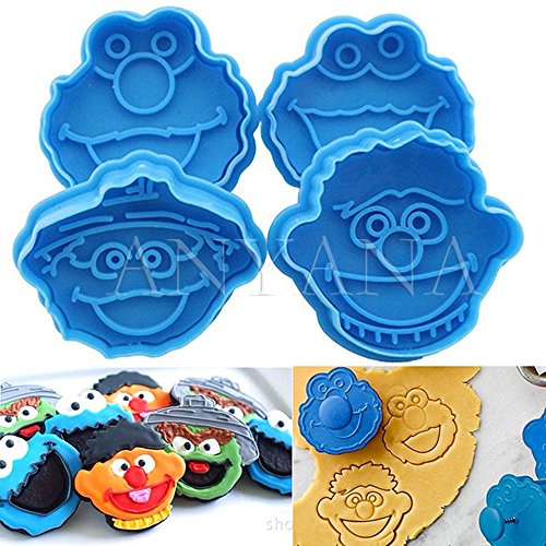 (Anyana)/Kitchen Dining/Cook's Tools Gadgets/DIRECT FROM USA/Anyana 4 Sesame Street Oscar Ernie Elmo Monster Fondant Cake Mold Plunger Cookie Cutter