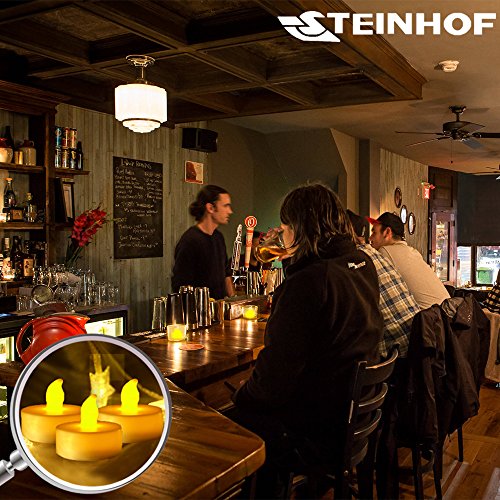 - ★FLIKERING TEA LIGHTS EFFECT:FLICKERING ELECTRIC SMALL VOTIVE CANDLES yellow flickering tea lights looks REALISTIC,ROMANTIC ambience,decoration bar,coffee shop, restaurant, hotel, churches,new year celebration.