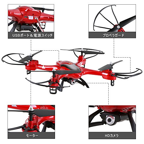 -. Title : Holy Stone ドローン HDカメラ付き iPhone&Android生中継可能 高度維持機能 2.4GHz 4CH 6軸ジャイロ WI-FIカメラ FPVリアルタイム モバイルバッテリー付 国内認証済み 日本語説明書 HS200 (レッド)