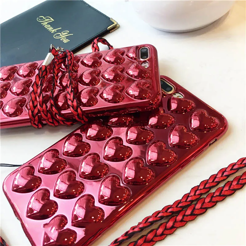 Feature:3D Luxury Electropla Love Heart Phone Case