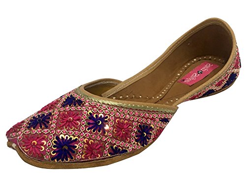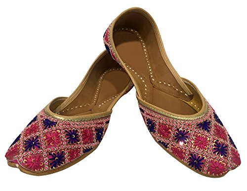 Step n Style Womens Colourful Indian Khussa Flat Pumps Shoes Phulkari with Payel