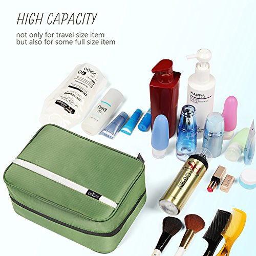 LARGER THAN YOU THINK: Coisum Travel Toiletry Bag has a 6.8L(11.2L*4.87W*7.6H) capacity and can keep 8 bottles of 360ml water with the zipper closed, it has plenty of storage areas to hold all your normal size necessities and keep them secure.