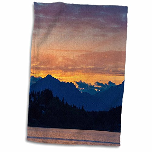 3D Rose Washington State-Kitsap County Dramatic Sunset Olympic Mountains Hand Towel, 15" x 22"