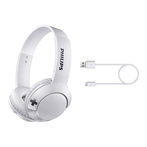 Philips SHB3075WT BASS+ On-Ear Bluetooth-Kopfhorer mit Mikrofon (12 Stunden Akku, satter Sound, starker Bass) weiss
