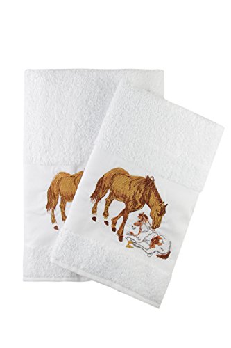 Luxury Horse Embroidered Ecru Bath and Hand Towel 100% Cotton Bathroom Set & Gift By Ebru