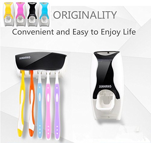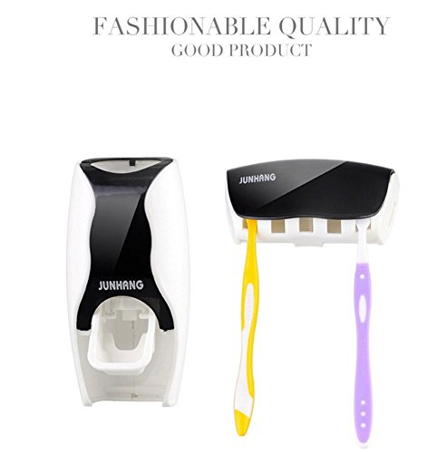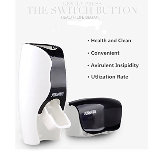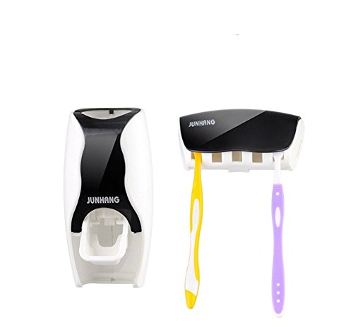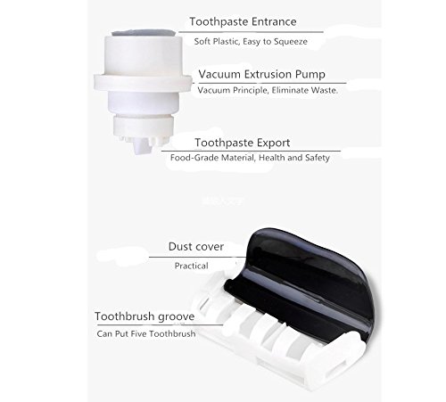 Family designed for your convenience, Hygienic and Economy. Toothbrush holder keeps your toothbrush safe, clean. it keeps bristles dry and sanitary. applicable to various brands of toothpaste. Say goodbye to sticky, messy sinks and counters. This dispenser allows you to quickly, easily and neatly dispense just the right amount of toothpaste directly onto your brush.? Specification:? Toothpaste Dispenser: 6.29*3.93 IN Brush Holder: 5.11*2.55 IN Material: ABS Plastic Weight: 8.81 OZ No batteries required? One-touch automatically squeeze appropriate amount of toothpaste? All Come with 3M double-side stickers. The holder can simultaneously released 5pcs toothbrushes.? Hygienically Brushing your tooth in bathroom? Vacuum technology Pump out last drop of toothpaste to avoids waste of toothpaste? Package:? 1 x Automatic Toothpaste Dispenser? 1 x Free Brush Holder Set? 0