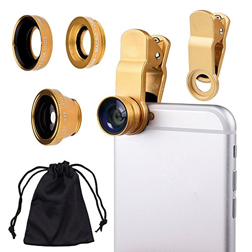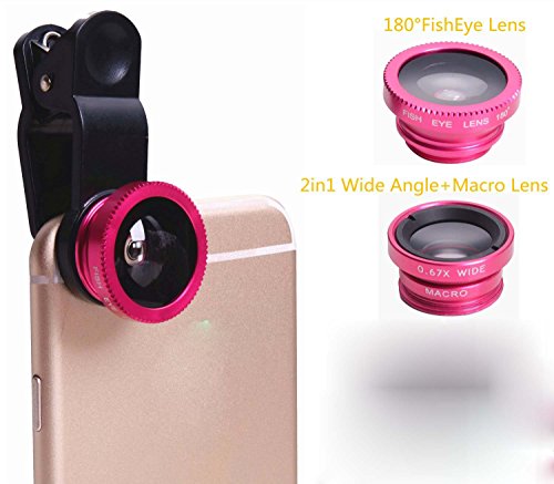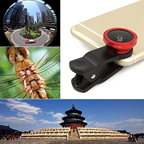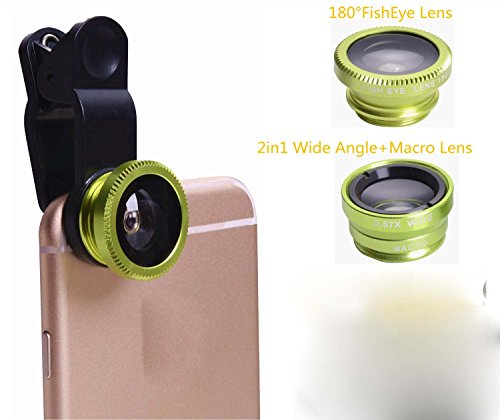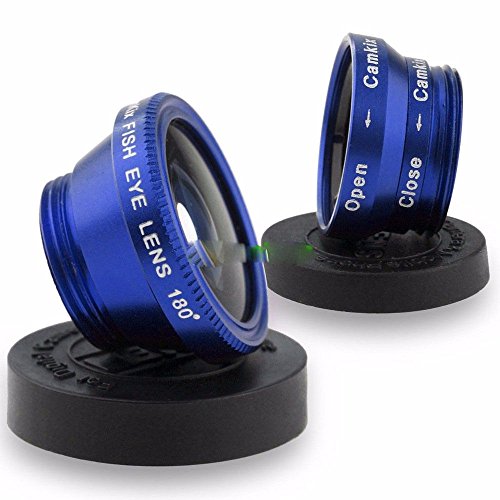 Shinefuture Universal 3 in 1 180 degree Clip Fish Eye + Wide Angle + Macro Lens Clip Camera Photo Kit For iPhone 6S 6 5S Samsung Galaxy S6 Android and All Other Smartphones (Blue)